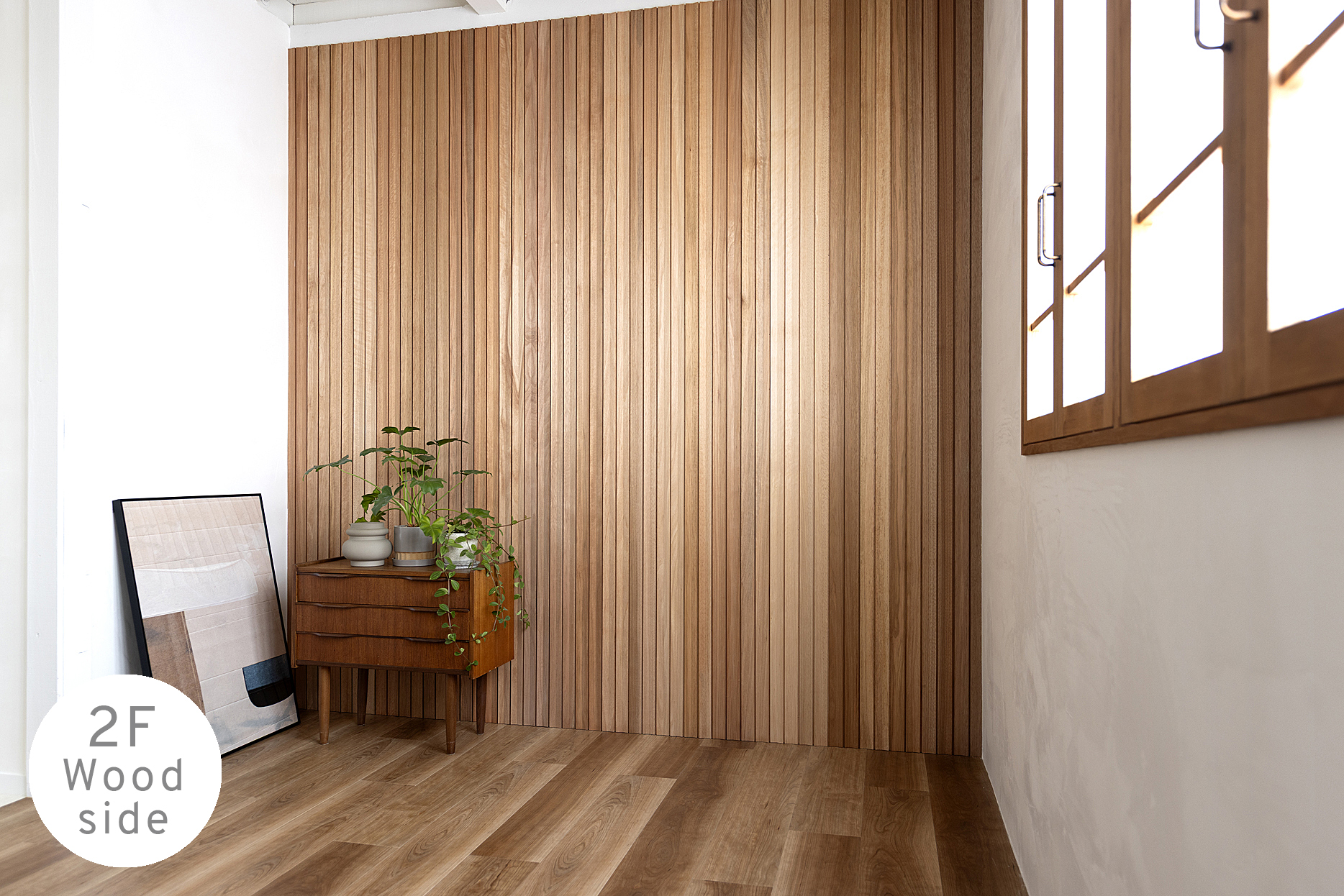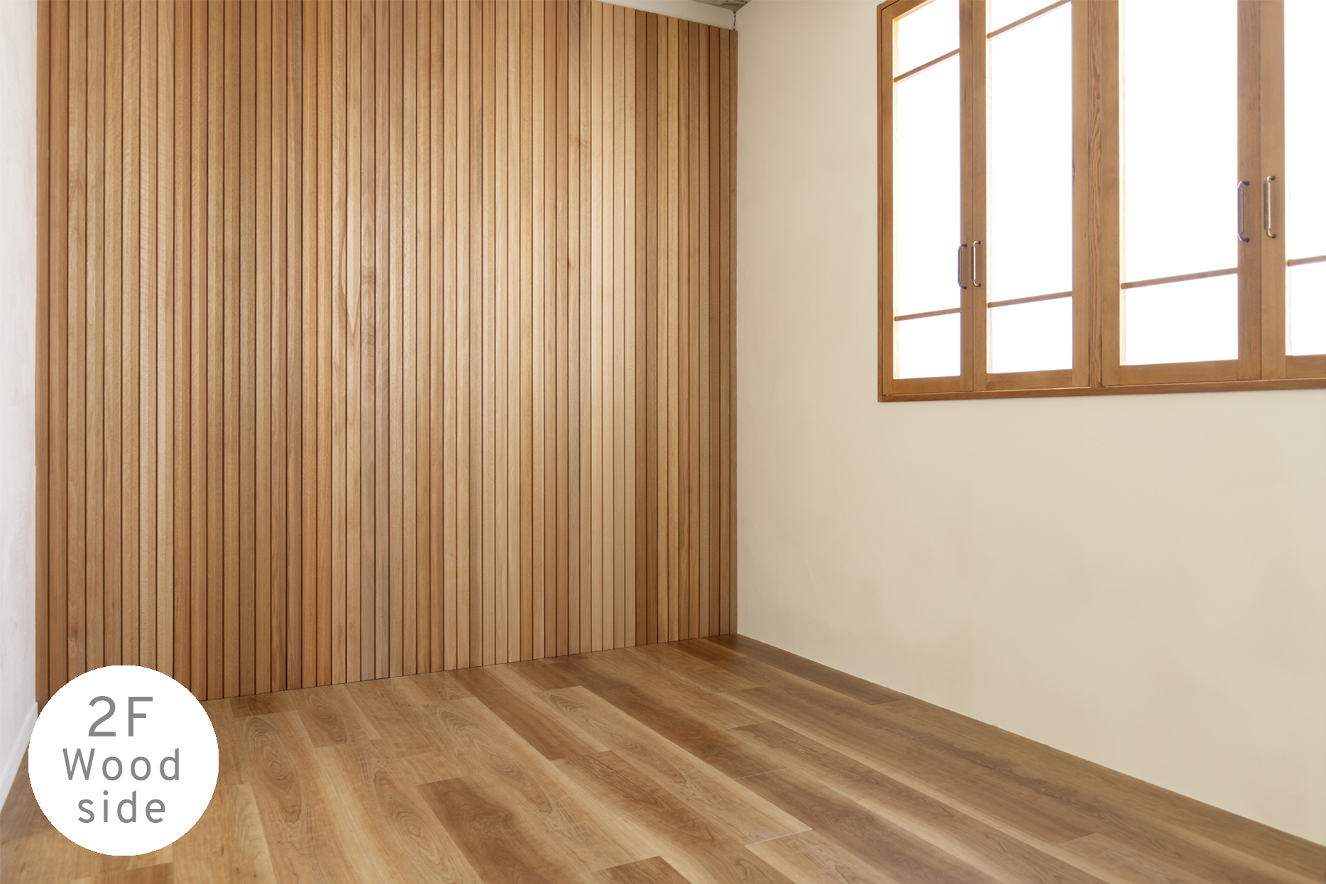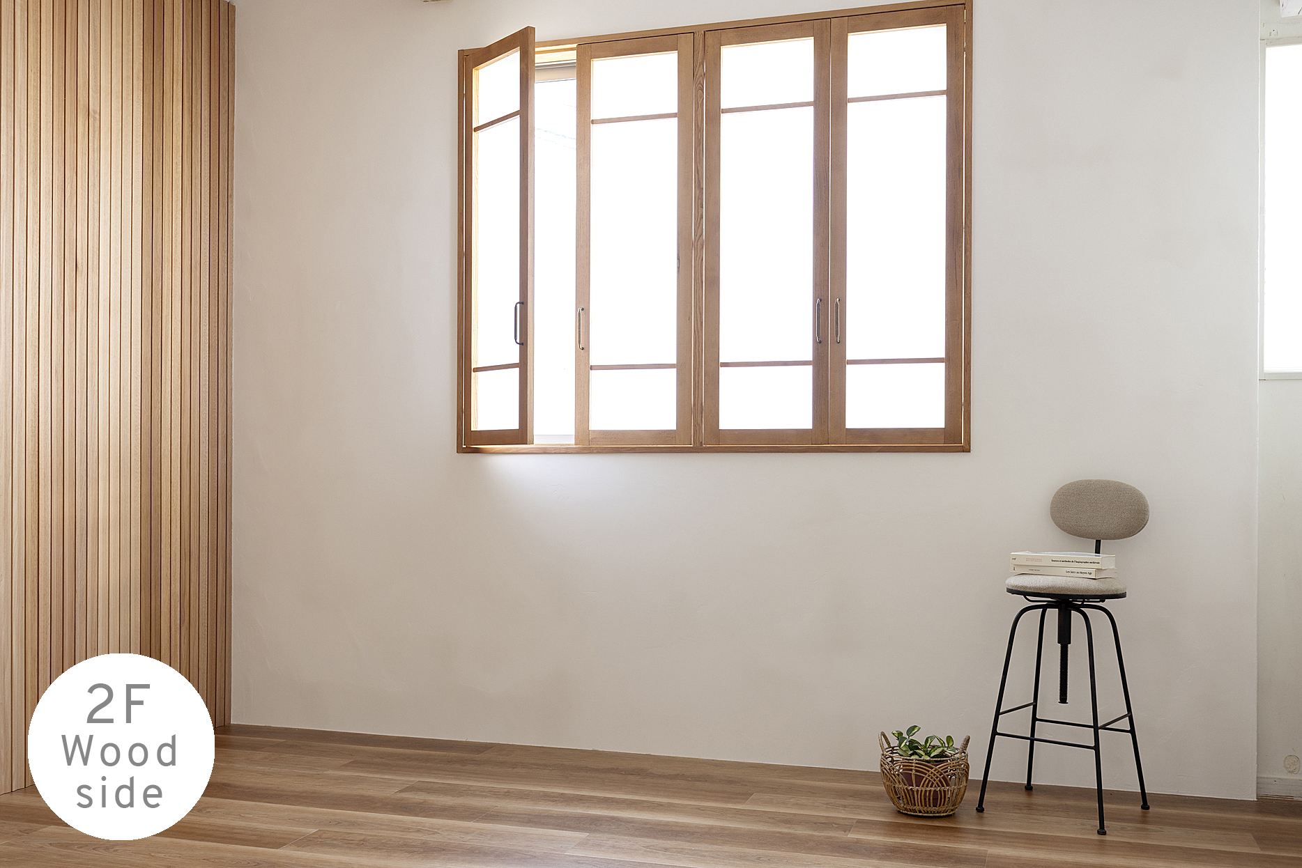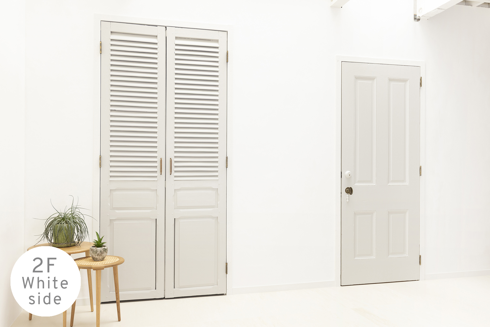 白の抜け感と木の温もり。質感の異なる2つの撮影シーンを備えた2Fスタジオ。